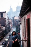 “Ray Bremser on the fire escape of Allen Ginsberg’s apartment in the East Village. Bremser is a Beatnik jazz poet and probably describes himself as an ex-convict.”