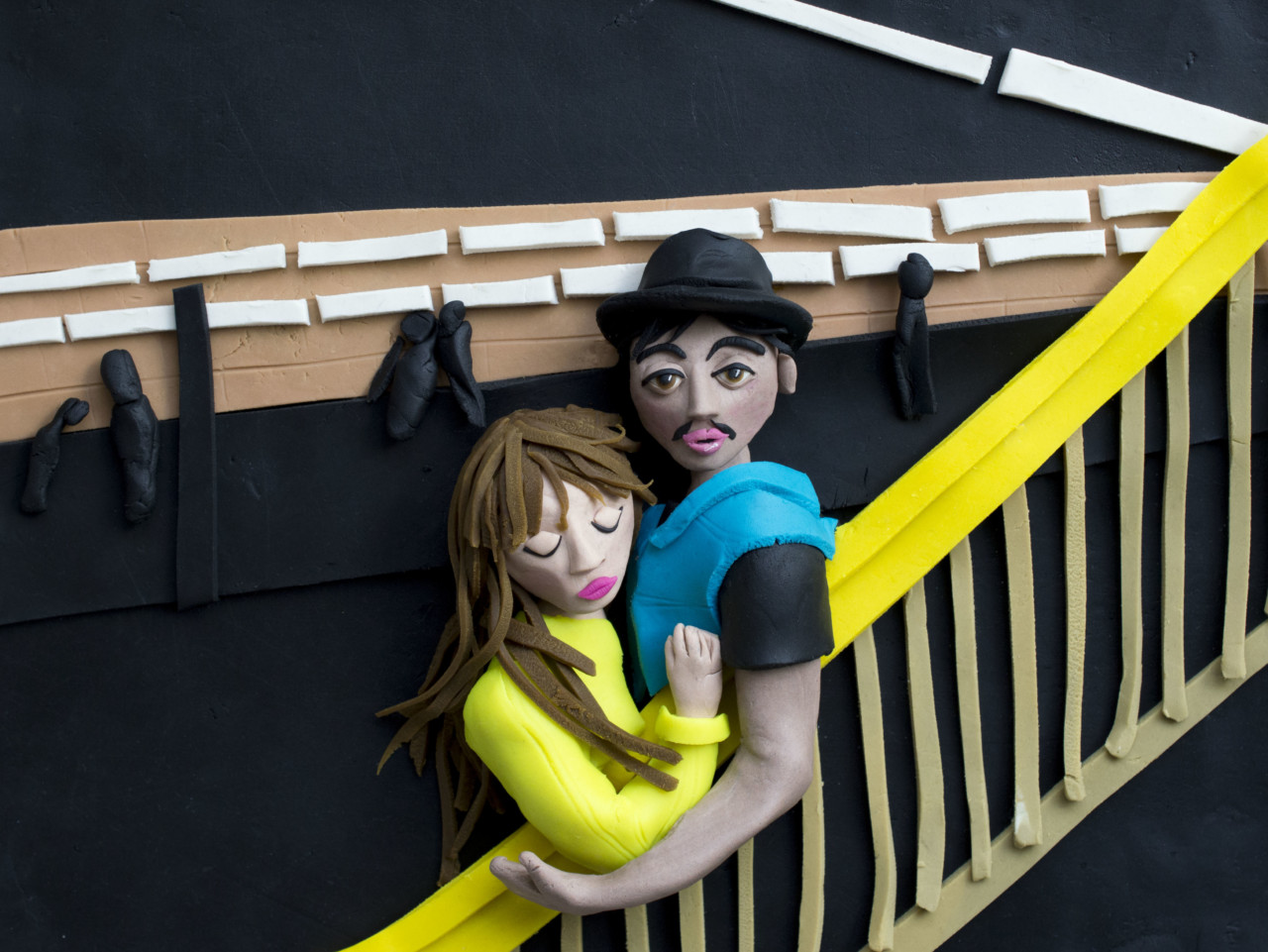 At first glance, Bruce Davidson’s Subway series shows a dark and dangerous side of New York in the early 1980s—you can almost hear, smell and feel the subway through these images. I was interested to see if there was some way to translate the extreme contrasts of shadow and color into Play-Doh. I chose to try to remake this photograph of two young lovers… a glimpse of tenderness and humanity amongst the grit and the noise of the subway.