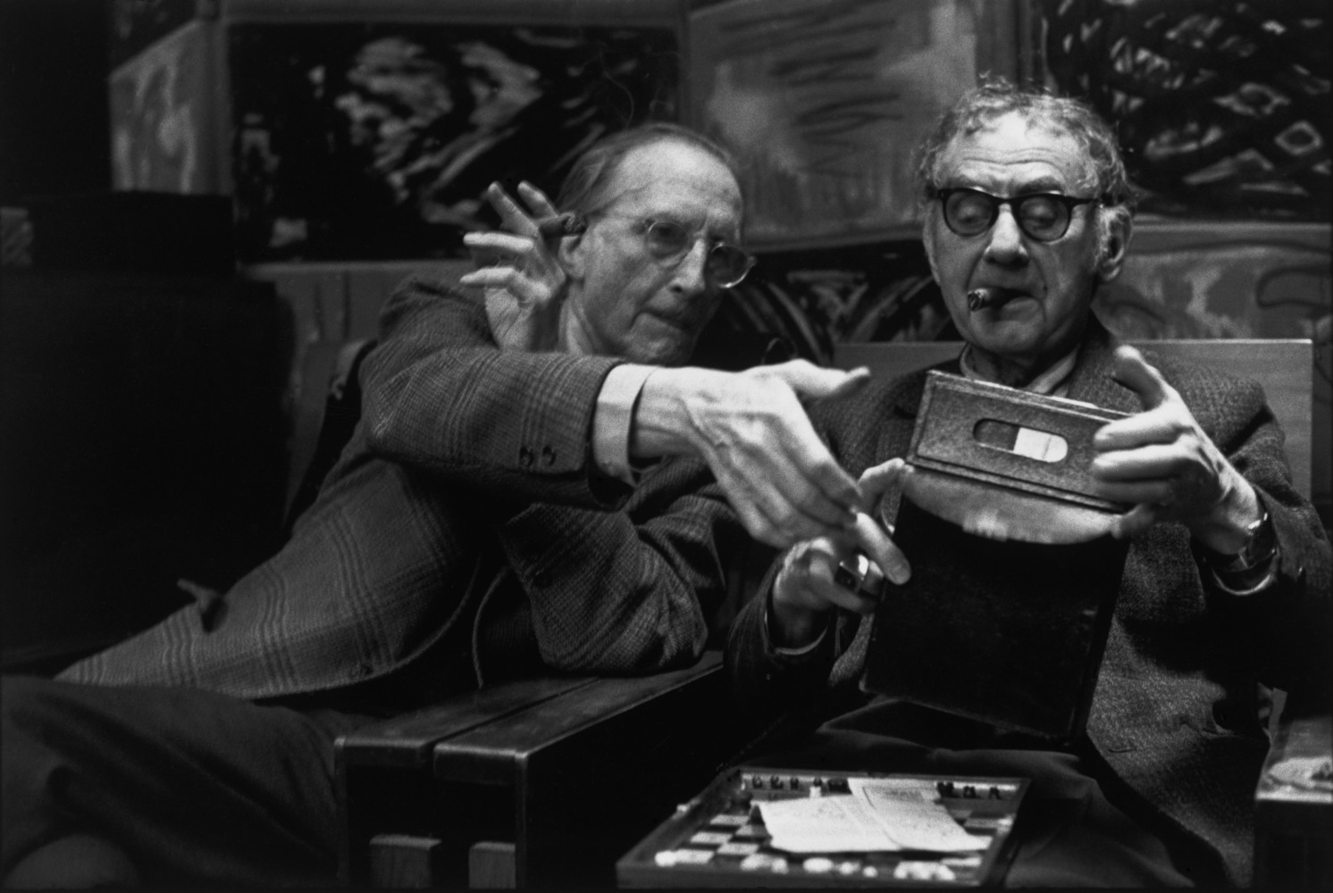 Artists Man Ray and Marcel Duchamp (right). Paris, France. 1968.