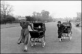 With his 1965 series on Wales, Davidson returned to a more intimate and poetic vision, portraying the miners returning from work, faces streaked with coal, but also more whimsical images: a statuesque white horse lying in a field, a girl alone dancing in a cemetery overgrown with wild grasses, or a boy pushing a stroller with a doll and a teddy bear along a desolate road : a line of laundry hanging in the background offers the only light in an otherwise bleak image.