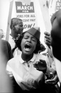 Bruce Davidson Led by Martin Luther King Jr., a group of civil rights demonstrators march from Selma to Montgomery to fight for black suffrage. A young African American man with the word "VOTE" on his forehead. A (...)