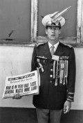 Dennis Stock Pacifist demonstrating at Santa Monica. "Waste more land" alludes to the name of the US Commander-in-Chief in Vietnam, General Westmoreland. California. 1968. © Dennis Stock | Magnum Photos