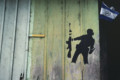 In Meiselas’s earliest images from the series, the Prince Street Girls are coddled in a childlike innocence, but fueled by curiosity. Writing of her experiences shooting in their after-school hours, Meiselas recalls, “They’d see me coming and call out, ‘Take a picture! Take a picture!’” Photographed on the cusp of adolescence, the girls walk home in their traditional plaid catholic school uniforms, stockings yanked up high, hanging off playground structures and blowing bubbles of gum. “At the beginning, I was taking pictures just to share with them,” Meiselas explains. A physical exchange forms the basis of emotional trust in the relationship between Meiselas and her subjects, a gesture that often informs her practice.