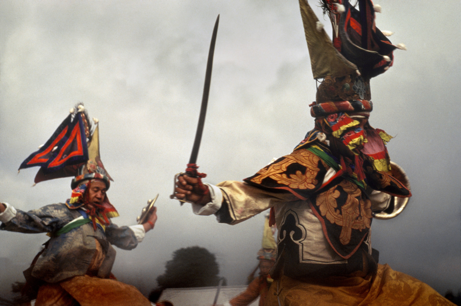 Marilyn Silverstone Warrior dancers, attendants of the sacred Mt. Kanchenjunga and defenders of the Dharma, during the Sikkimese New Year dances. Gangtok, Sikkim. 1968. © Marilyn Silverstone | Magnum Photos