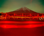 Chris Steele-Perkins Road works and Mount Fuji near Kawaguchi-ko. The photographer made a 4 miniute exposure at night. The flashing red lights of the works combined with the green light reflected in the clouds from the (...)