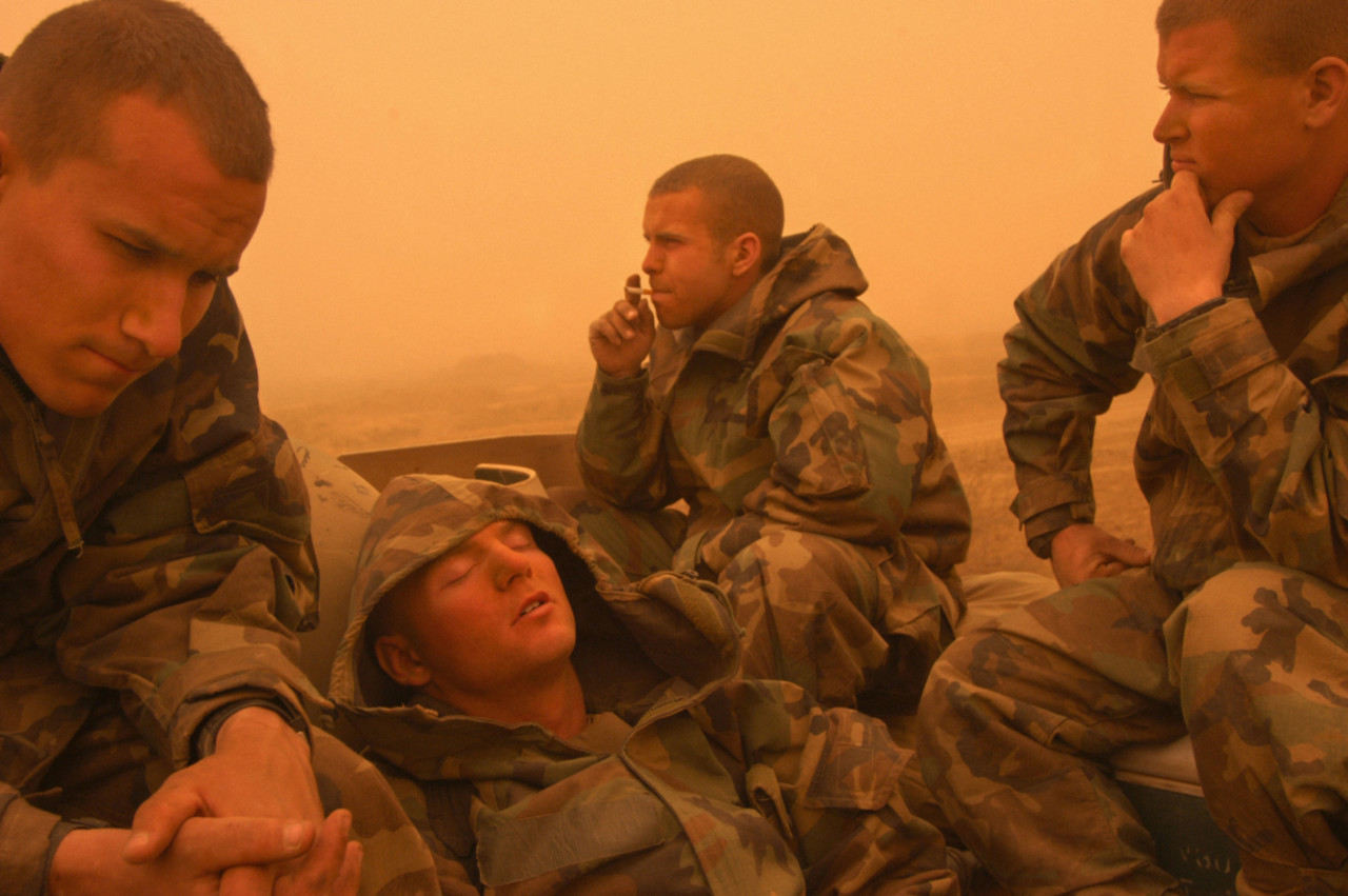 Alex Majoli Chesty Camp, 40 miles northwest of Al Kut. Marines sleeping after being ambushed the night before. Iraq. April 8, 2003. © Alex Majoli | Magnum Photos