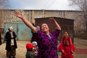 Carolyn Drake An Uzbek woman whose family follows Shariah law poses in the courtyard of her home. The population of the Fergana Valley was devoutly Muslim before Soviet times, one of the major reasons the Sovie (...)