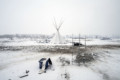 A few miles from Towell’s home in Ontario, the Aamjiwnaang First Nation in Sarnia had camped across a railway track, blocking a spur line for CN rail. Their lands are within a 25 km radius of 60 industrial facilities—many of them chemical—packed within a 15-square-mile area known as Chemical Valley. “The trains were carrying chemicals into Chemical Valley for oil processing and plastics – they stopped the trains for about ten days or so,” says Towell, who photographed the resistance.