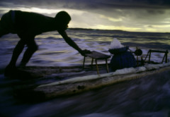 Rio Branco was a freelance photographer and director of photography for movies when he embarked on documentary photography and was soon noticed for the dramatic quality of his color work. In 1980, he became an associate of Magnum Photos. Fascinated by places of strong contrast, in the power of tropical colors and light, he made Brazil his main area of exploration. In 1985, he published Dulce Sudor Amargo, a book in which he drew a parallel between the sensual, vital side of Salvador da Bahia and the historical side of the city, which, at the time (1979) was inhabited by prostitutes and the fringe elements of society. It is an essay on life and death, on the scars left behind by time and by living. The photographer’s fascination for these places of strong contrast essentially resides in the power of the tropical colors and light, which he conveys by means of his pictorial sensibility.