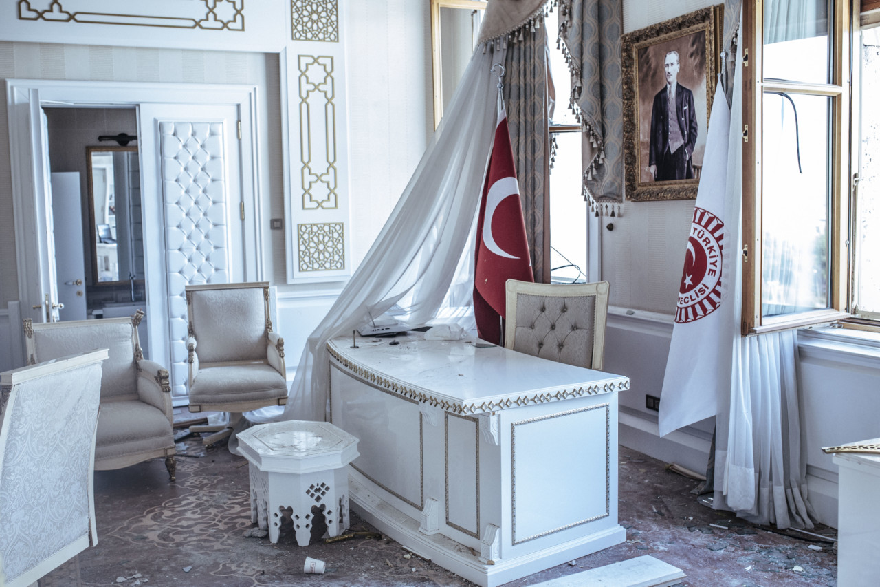 Emin Özmen Office of the Turkish Prime Minister, Binali Yildirim, in Turkey's Grand National Assembly in Ankara. It was badly damaged during air strikes on the night of the military coup attempt in Ankara. An (...)