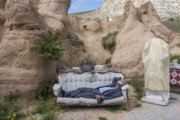 Emin Özmen Boys sleep near the museum in Hierapolis, an ancient site in Pamukkale. Pamukkale is the remarkably well-preserved site of the ancient Roman city "Hierapolis." Rich Romans came here for the “water (...)